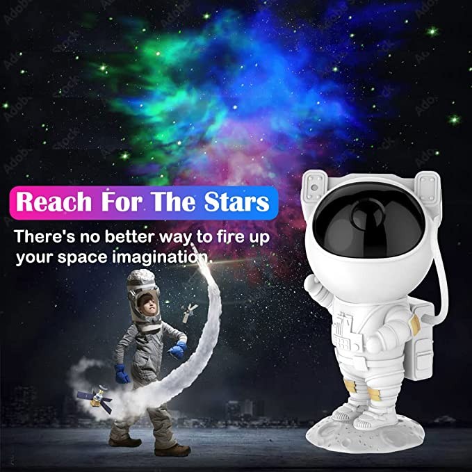 Ignite your imagination! This star projector features a unique astronaut exterior design to project starry sky and galaxy themes. This galaxy projector will create a romantic atmosphere to enjoy your leisure time and take you to explore the vast starry sky.