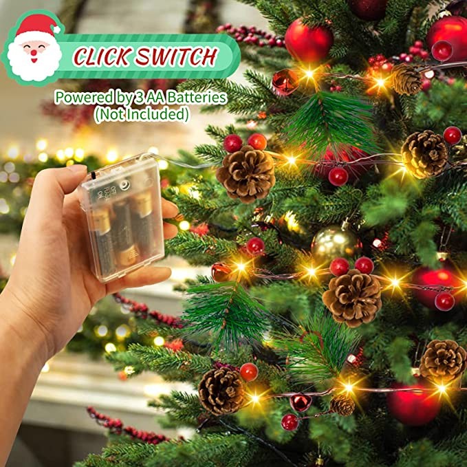 Christmas Garland with Fairy Lights 6.5FT 20 LED Battery Operated Lighted Xmas Garland Pine Cones Pre Lit Garland Christmas Home Decor for Mantle Stairs Tree Fireplace Table Indoor Outdoor Decoration