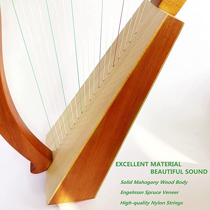 Harp, 19 string mahogany harp for adults and children beginners with piano bag tuning wrench black with replacement strings