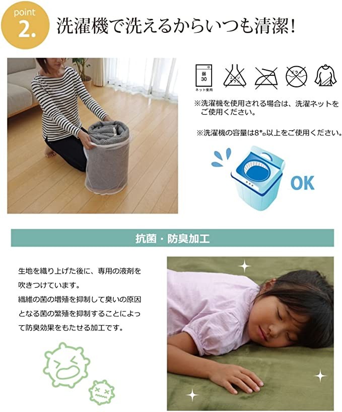 IKEHIKO Ikehiko and room carpet * deodorant solid color is about 92 × 185cm (can be used as electric blanket cover) green 185 × 185cm cm (approx. 2mm)