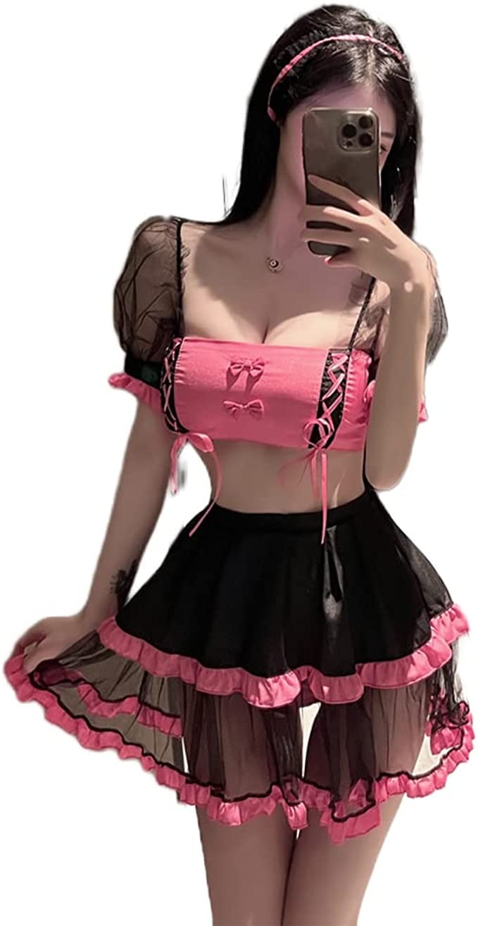 Ladies Sexy Cat Girl Cosplay Uniform Anime Cat French Maid Chiffon Apron Pajamas