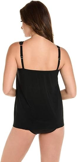 Adjustable straps allow you to customize the fit to your unique shape. Gentle draping effortlessly conceals extra pounds in your midsection.
