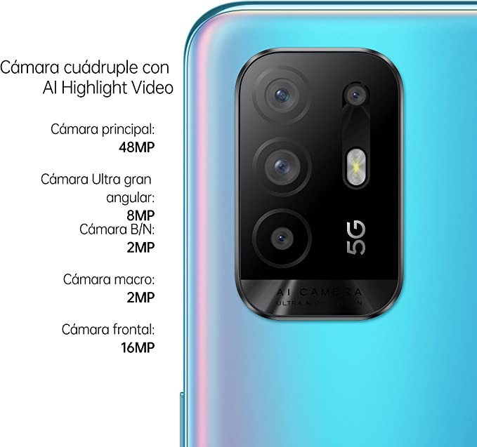 OPPO A94 5G Smartphone, 48 MP Quad Camera with Ultra Night Video, 6.43-inch FHD+ AMOLED Display, 4,310 mAh Battery, 30W VOOC 4.0 Fast Charging, 128 GB Storage, 8 GB RAM, ColorOS 11.1, Cosmo Blue