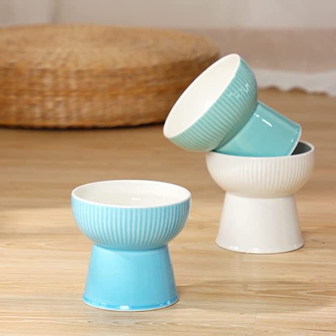 Pet Bowl Ceramic Protection Cervical Spine Cat and Dog Food Pet Bowl Rice Bowl Dog Bowl Anti-Battle Supplies High Feet Dishwasher Safe(White)