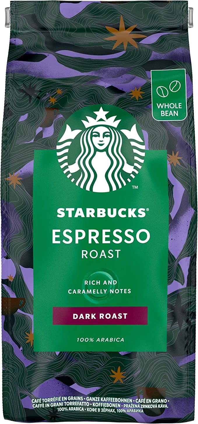 Starbucks Espresso Black Roasted Coffee Beans 450g Bag (Pack of 4)