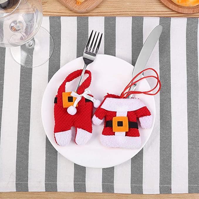 Uten 6x Christmas Cutlery Silverware Holders Pockets Knifes Forks Bag Santa Suit Xmas Party Dinner Table Decoration