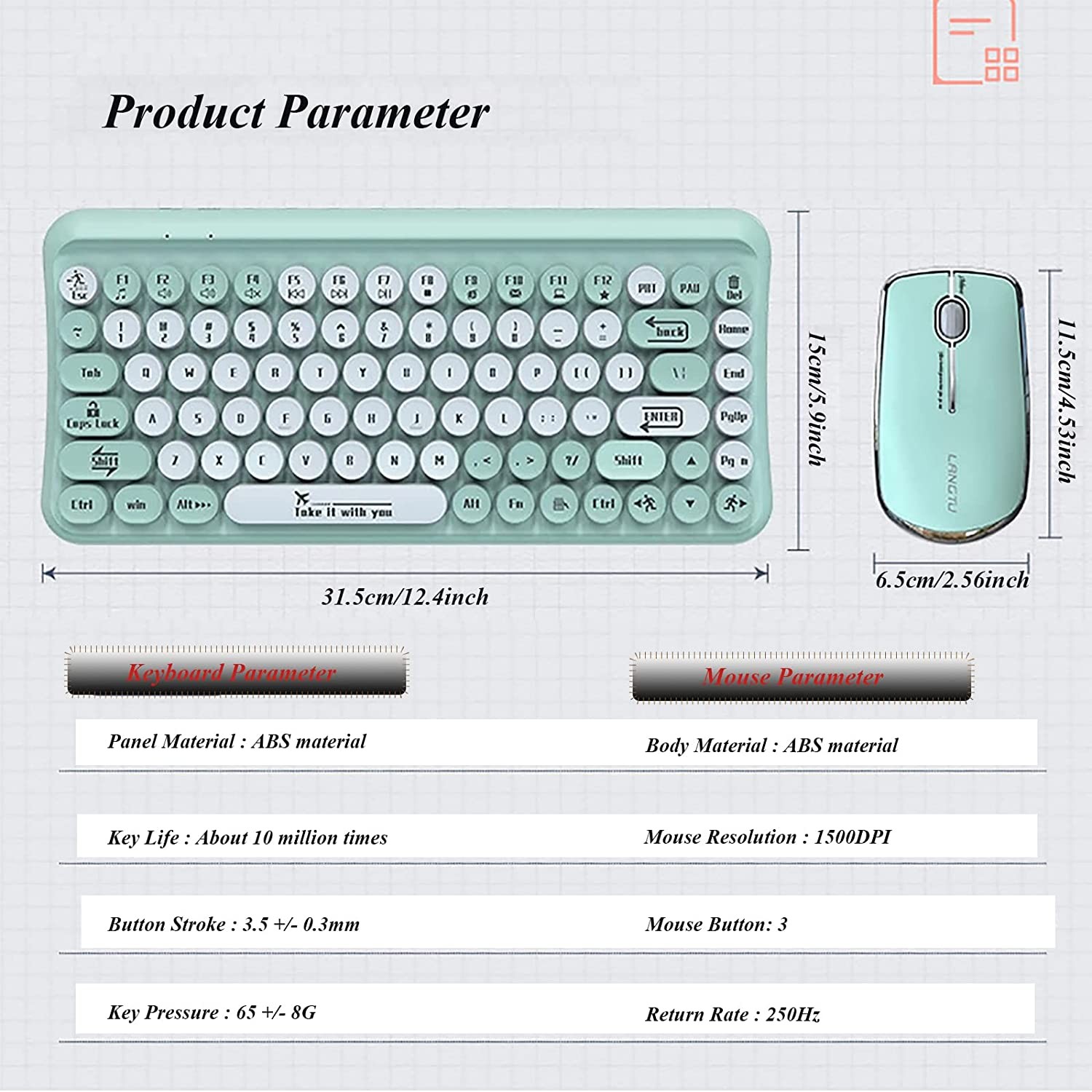 Wireless Computer Keyboard and Mouse Set, Mini Compact 85 Key Typewriter Retro Round Keycap Laptop Keyboard with 2.4GHz Connection and Optical Mouse, Ideal for Home Office Use(*)