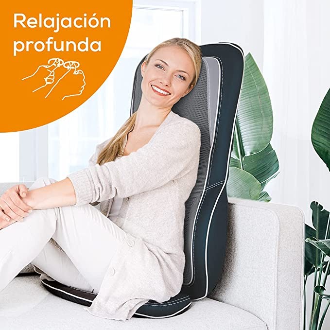 Beurer MG 315 Shiatsu Massage Seat Cushion Electric Massager For Neck And Back Massage With Light And Heating Function Automatic Body Scanning Function Black Grey