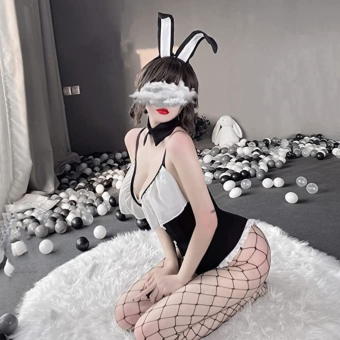 Ladies Bunny Lingerie Cosplay Costume Anime Sexy Bunny Girl Onesie with Bunny Ears