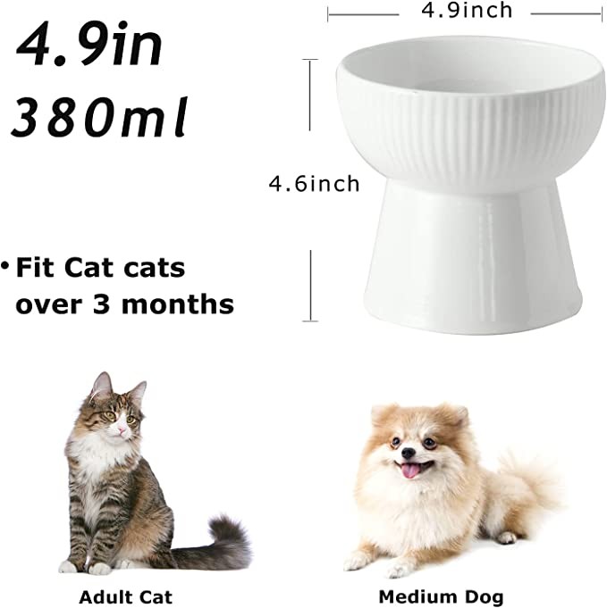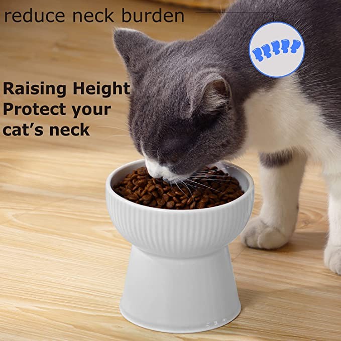 Pet Bowl Ceramic Protection Cervical Spine Cat and Dog Food Pet Bowl Rice Bowl Dog Bowl Anti-Battle Supplies High Feet Dishwasher Safe(White)
