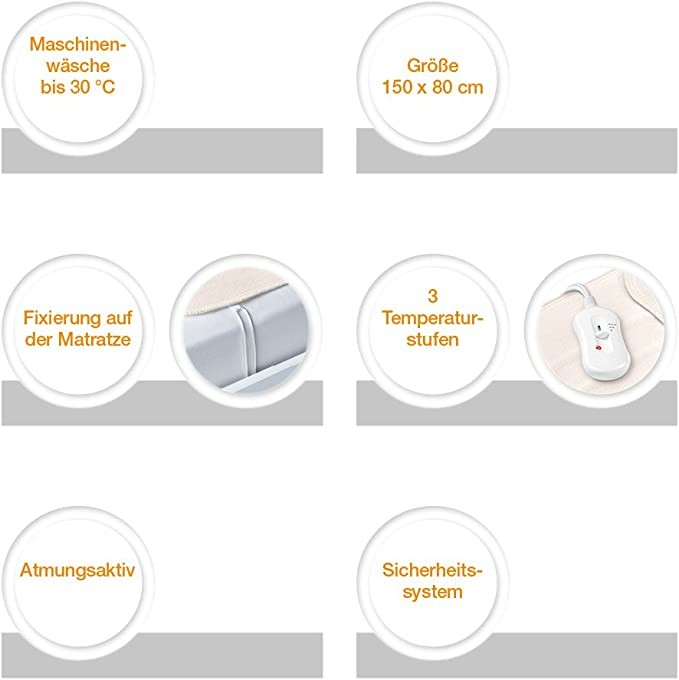 Sanitas SWB 20 wool electric blanket with safety system and 3 temperature classes, easy to fix on beds and mattresses, washable at 30 ℃, 150x80cm