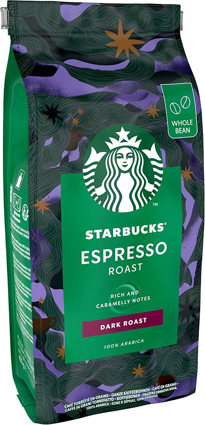 Starbucks Espresso Black Roasted Coffee Beans 450g Bag (Pack of 4)