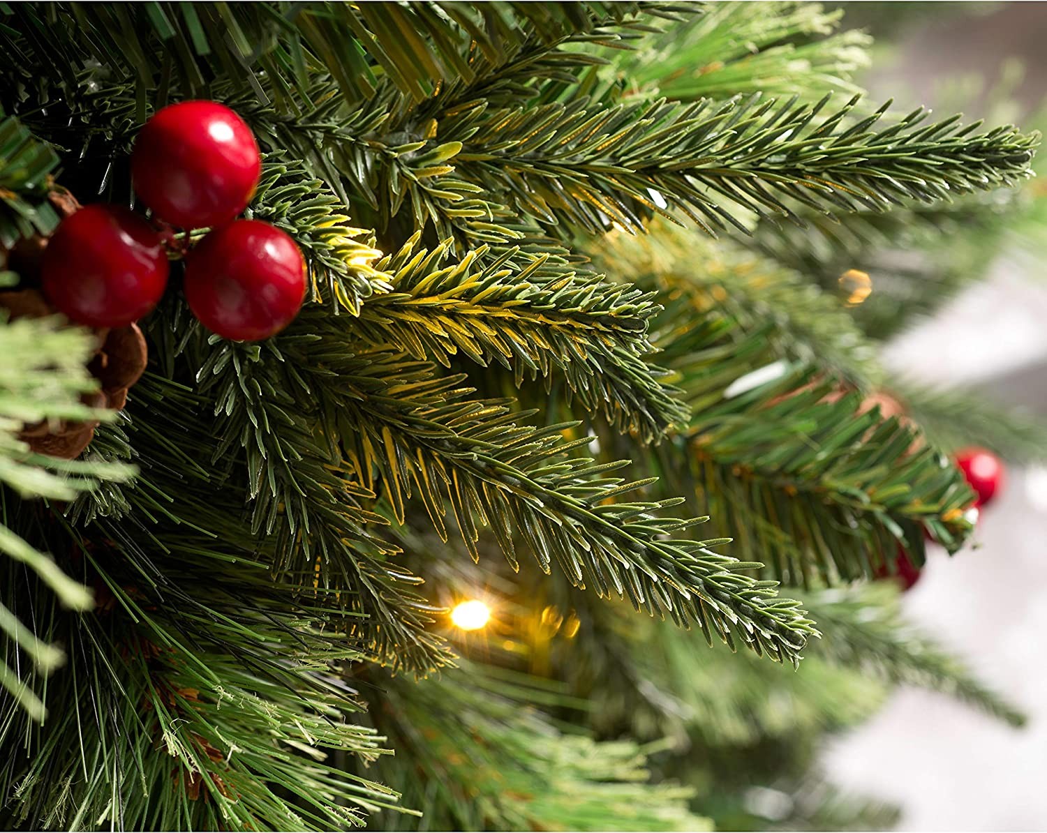 WeRChristmas Pre-lit Victorian Mixed Tip Berries & Cones Christmas Tree with 260 LED Lights, Green, 7 feet/2.1 m